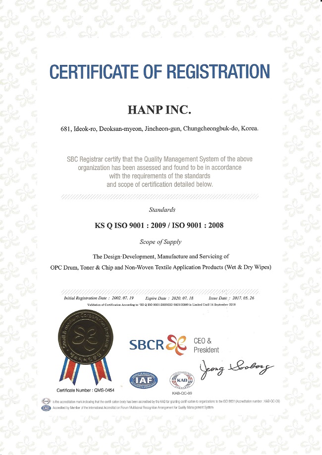 KS Q ISO 9001: 2009 / ISO 9001: 2008