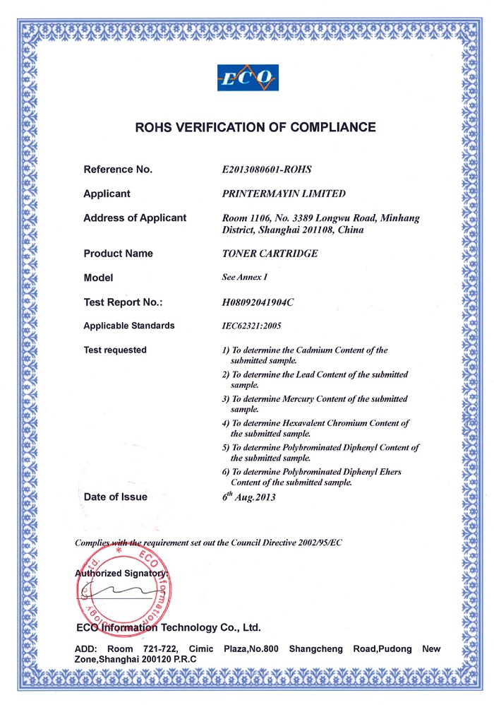 Сертифікат ROHS / Restriction of Hazardous Substances