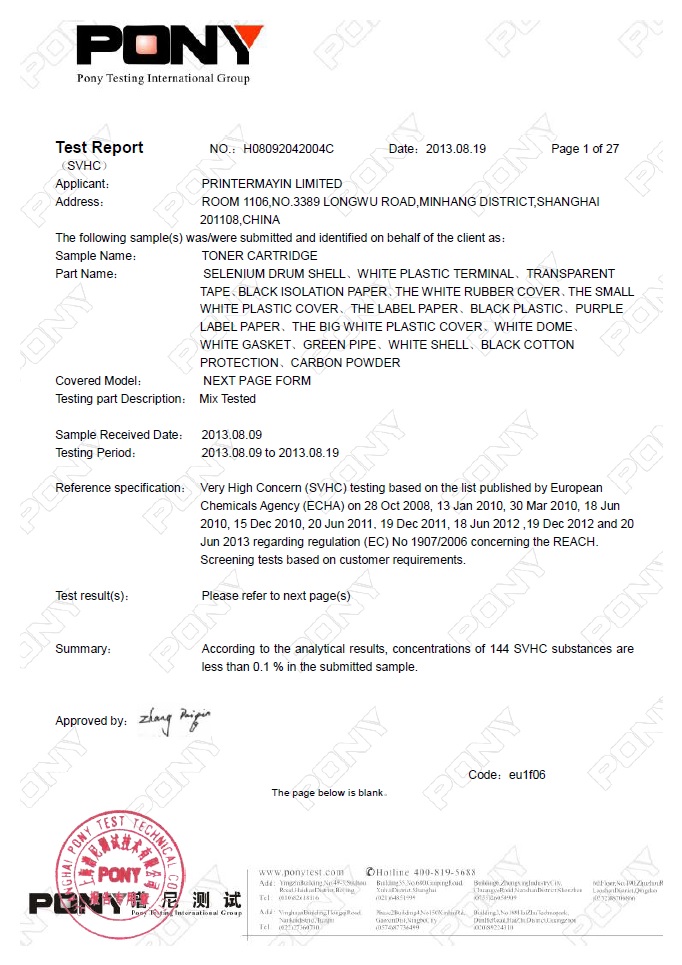 Сертифікат ROHS / Restriction of Hazardous Substances, доповнення 1